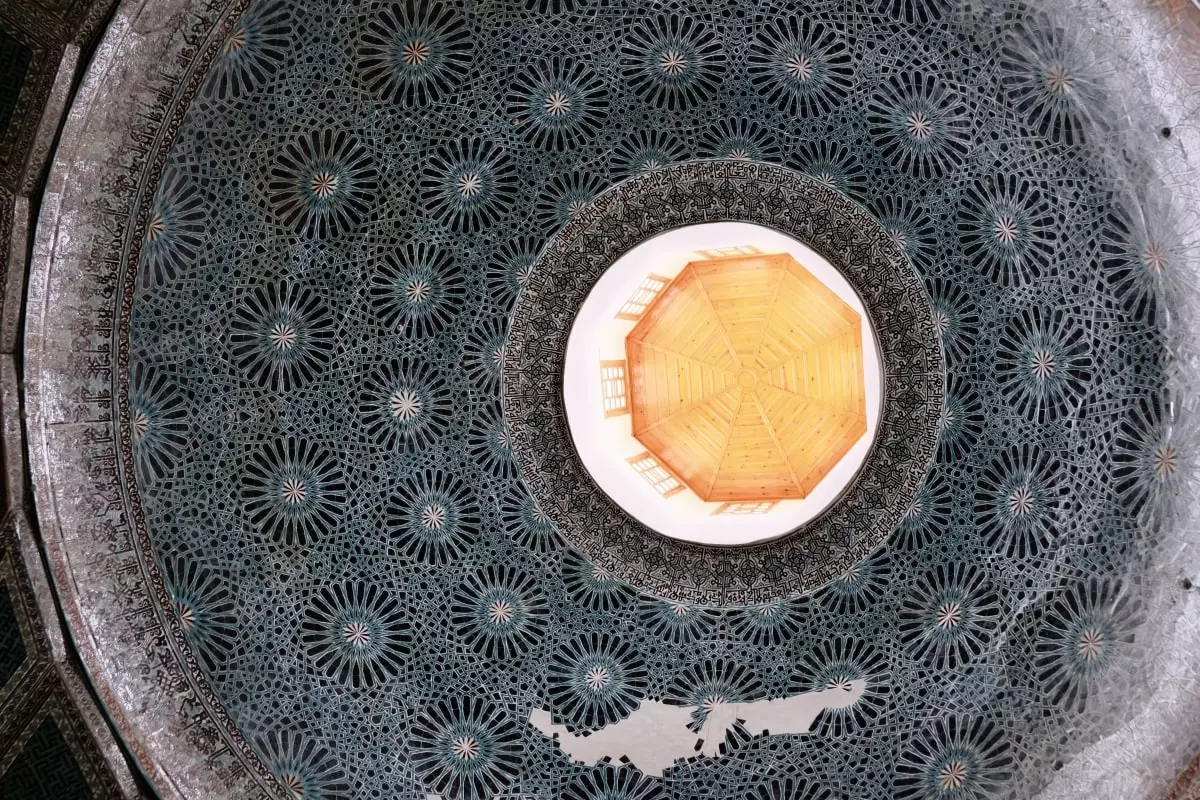Üçgen pandantiflerin üzerinde ise kubbe yükselmektedir. Gökyüzünü andırmaktadır. 24 ışınlı yıldızlarla kubbenin bütün yüzeyi süslenmiştir.